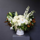 Chic & timeless, our popular front facing elegant & striking selection of dainty & focal seasonal blooms, nestled in a classic round hat box. Ideal gift for any occasion.
