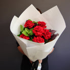 Indulge in the classic romantic gesture with our 1/2 dozen long stem premium red roses paired with lush greenery.
