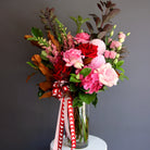 Beautiful tall, stemmed bouquet of romantic mixes of seasonal blooms, including lush greenery, presented in stylish wrap or chosen vase design & finished with luscious ribbon.