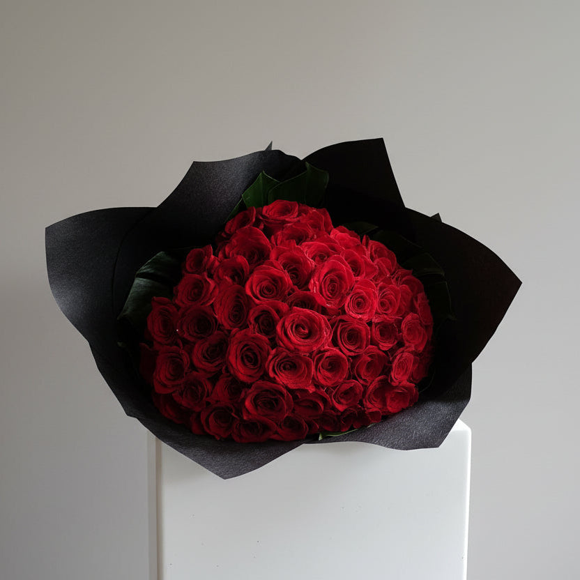 An opulent bouquet of tall premium red Ecuadorian roses, available in 20, 30, 40, 50 & 100 stems. This bouquet is designed to leave a lasting impression. Beautifully wrapped in our signature wrapping.